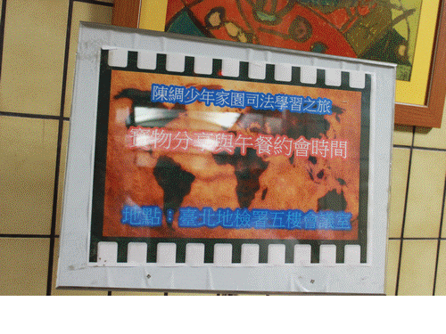 南投「陳綢少年家園」辦理司法學習之旅,102年8月19日上午於法務部進行參訪及闖關遊戲,由法務部曾部長、保護司朱司長兆民等擔任關主,與學員們進行闖關遊戲,中午並於本署五樓會議室舉辦溫馨午餐座談,學員們分組與法務部曾部長、保護司朱司長、行政執行署張署長清雲、南投地檢署林檢察長邦樑、苗栗地檢署張檢察長宏謀、士林地檢署林檢察長朝松及本署楊檢察長治宇等人用餐,並由學員們各自上臺發表上午闖關之心得及表演自行排練之熱舞,充分表現年輕人熱情活力之精神。下午蒞臨本署參訪闖關,先由本署蔡興華主任檢察官、張萍萍科長帶領參觀本署偵查庭錄音(影)設備及作業情形、雙向視訊系統、遠距訊問等設施,並進行地檢署闖關遊戲,由法務部調查局、本署觀護人室及文書科設立「測謊高手」、「科技監控」及「反毒小學堂」等關卡,讓同學們從遊戲中體驗各種刑事偵查犯罪、執行監控、反毒等觀念,並由蔡主任檢官帶領同學演出模擬劇場,並進行有獎徵答,參訪學員均表示此次司法之旅收穫良多。