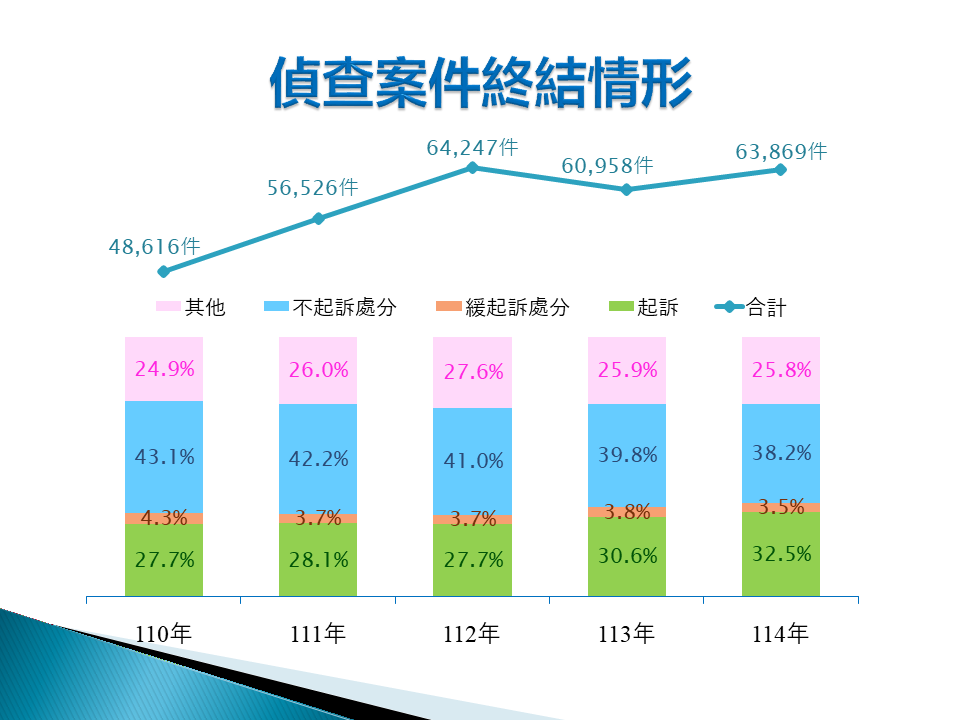 110年48,616件,111年56,526件,112年64,247件,113年60,958件,114年63,869件。