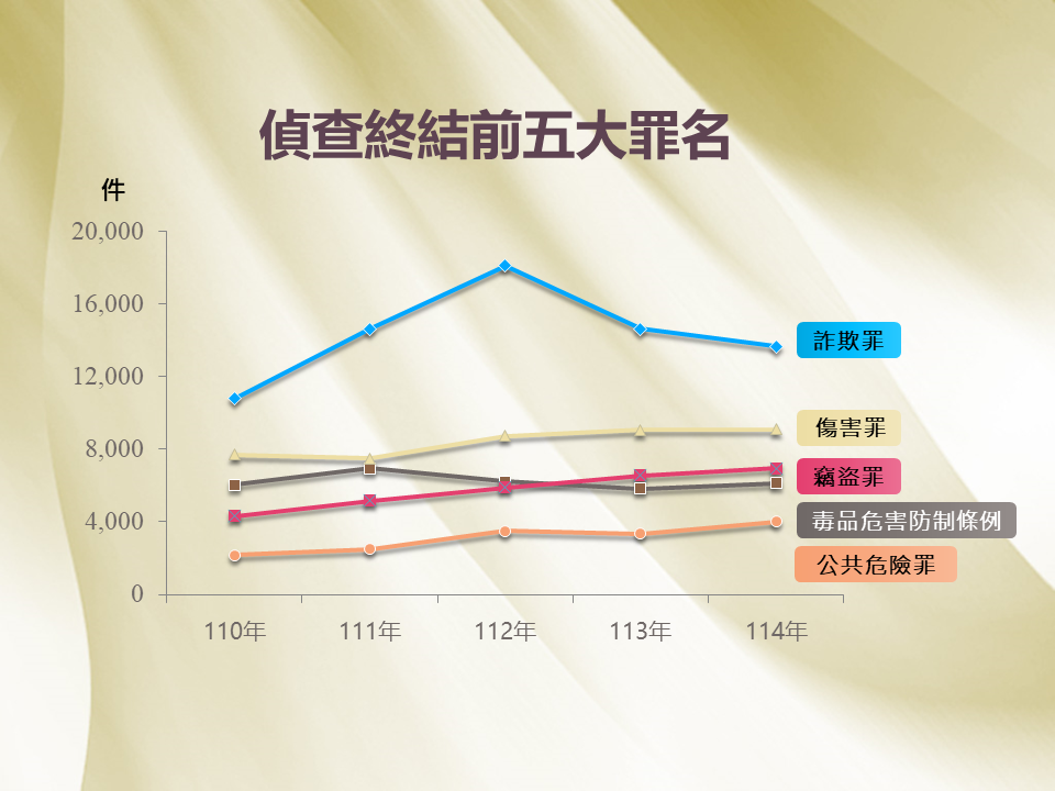 臺北地方檢察署110年至114年偵查終結前五大罪名